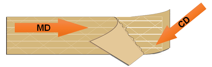 Represents Cross Direction/CD of fiberglass or polyester yarns in- between the two plys.